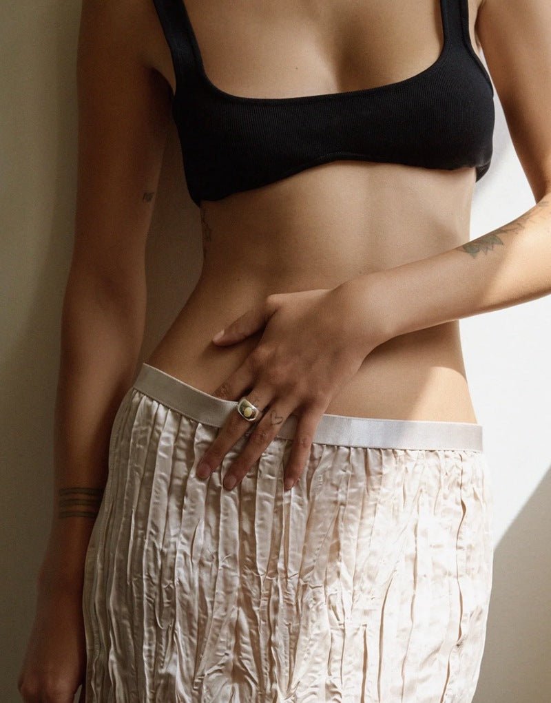 The contrast between cool silver and soft jade creates a balanced, sophisticated look, with light reflecting off the smooth surface for a luxurious feel.Each piece features unique natural texture and light yellow hue. Available in Size 6, 7, 8 to fit different finger sizes.