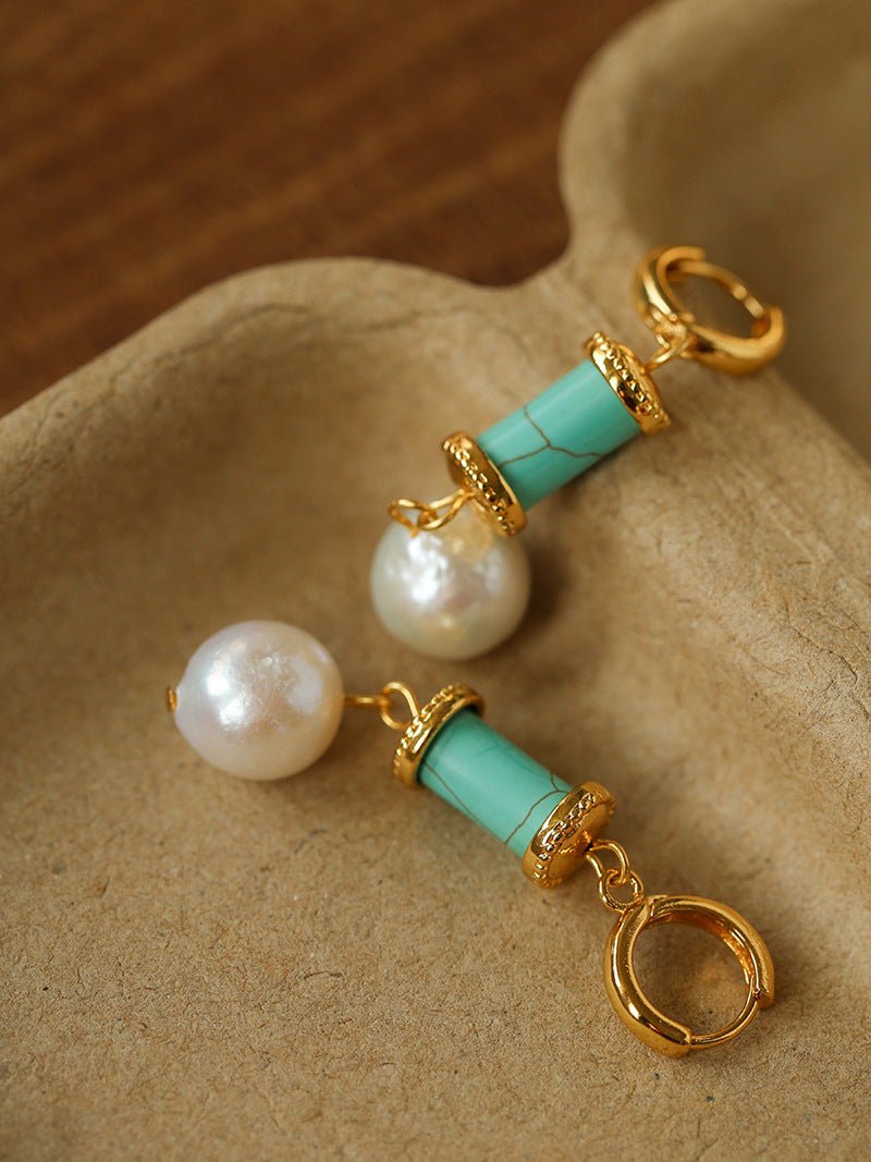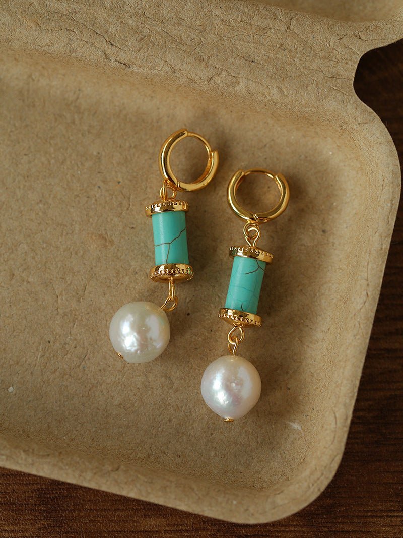 Spring 2026 Vintage Natural Stone & Pearl Earrings - floysun