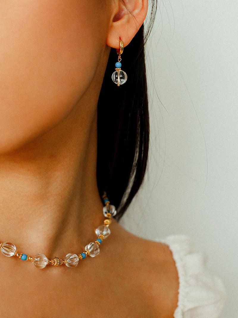 A pair of clean and elegant drop earrings. Featuring lantern-shaped glass beads, they offer a subtle shine and gentle movement when worn. Lightweight and versatile, perfect for everyday styling with a refined touch.