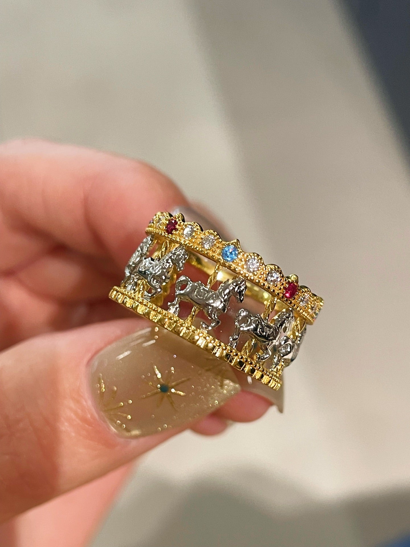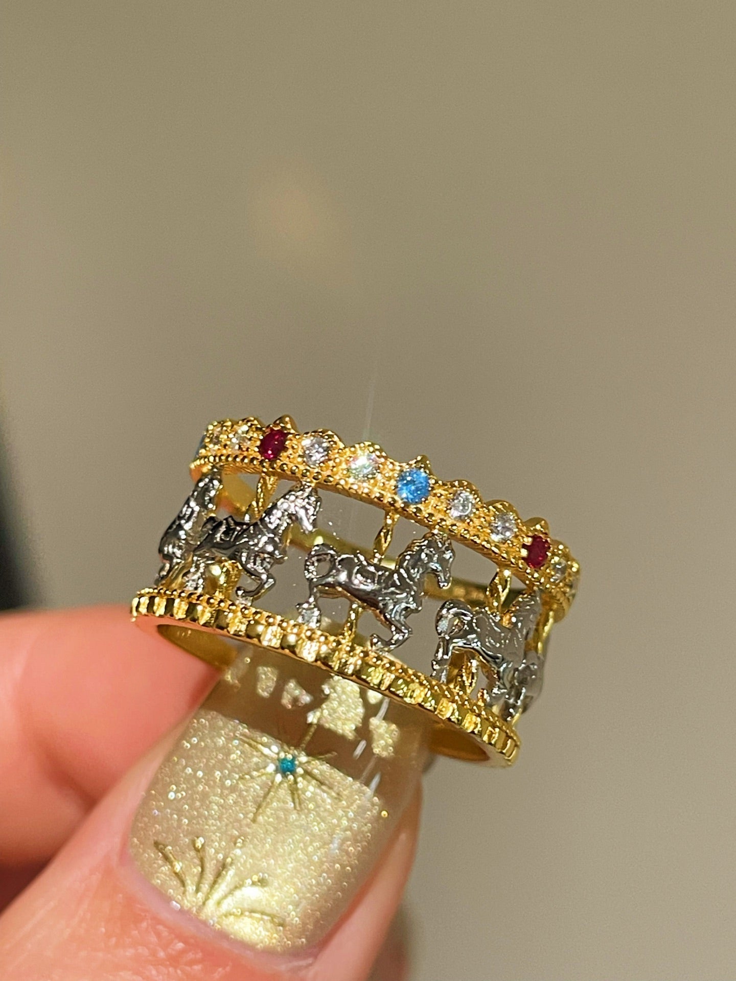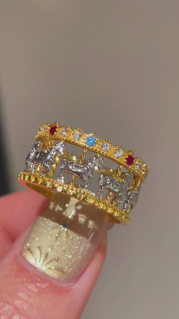 Vintage Carousel Ring in 925 Sterling Silver with Gold Plating