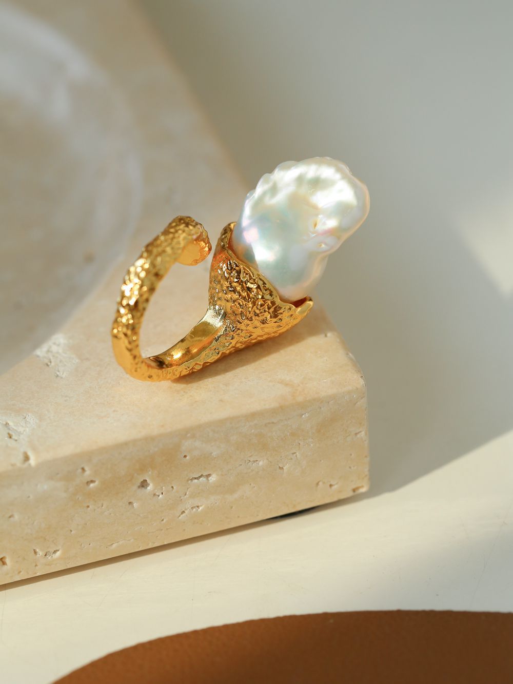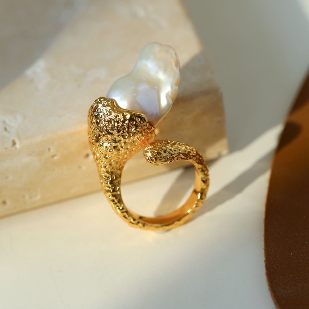 Vintage Floral Orb Fish-Tail Baroque Pearl Rings